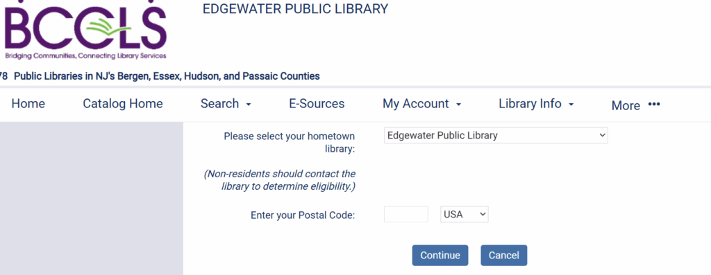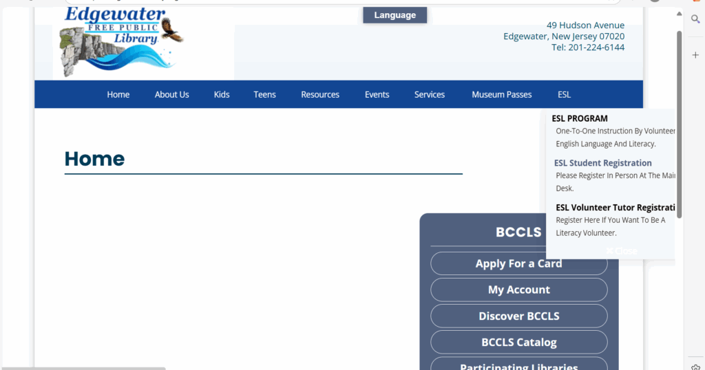 私はEdgewaterに住んでいるため、Edgewater Public Libraryのホームページで説明していきます。
